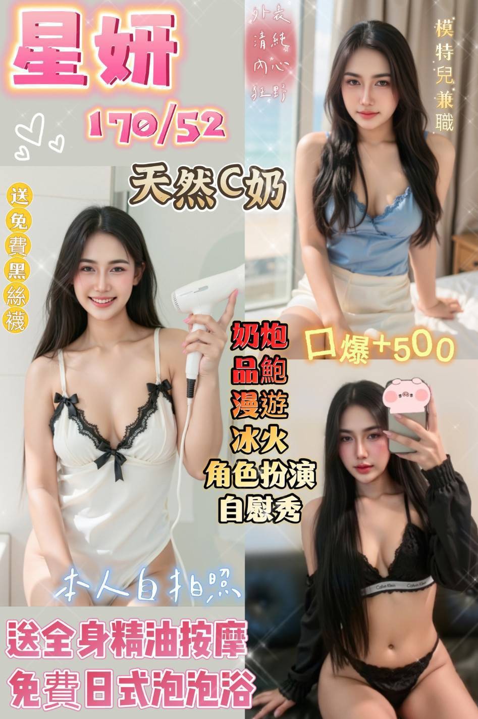 ✅無套吹✅帶套做✅甜蜜共浴✅品鮑✅小親親✅胸推✅屁推✅69✅奶炮✅事後按摩